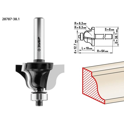 Фреза кромочная калевочная ЗУБР 28787-38.1, предназначена для скругления кромок при обработке столешниц, полок, шкафов и прочих работ с разнообразными видами древесины. Улучшенный твердый сплав для повышенного ресурса. Три лезвия обеспечивают максимальную чистоту поверхности. Заточка производится только на самых современных станках с ЧПУ. Упорный подшипник позволяет обрабатывать криволинейные кромки без дополнительных приспособлений.