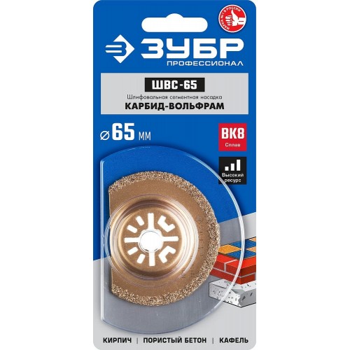 Насадка шлифовальная сегментная ЗУБР 15563-65, предназначена для обработки кирпича, пористого бетона, кафеля. Насадка изготовлена из высококачественной инструментальной стали с покрытием из карбида вольфрама марки ВК-8 на автоматизированных производственных линиях с применением новейших методов напыления твердосплавного зерна.