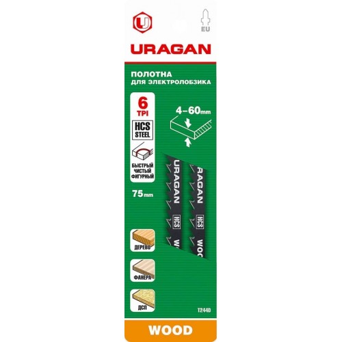 -Размер полотна: 75 x 4 mm -Классификация по Bosch: T244D, Полотна URAGAN обладают увеличенным рабочим ресурсом и имеют повышенную стойкость к излому.
