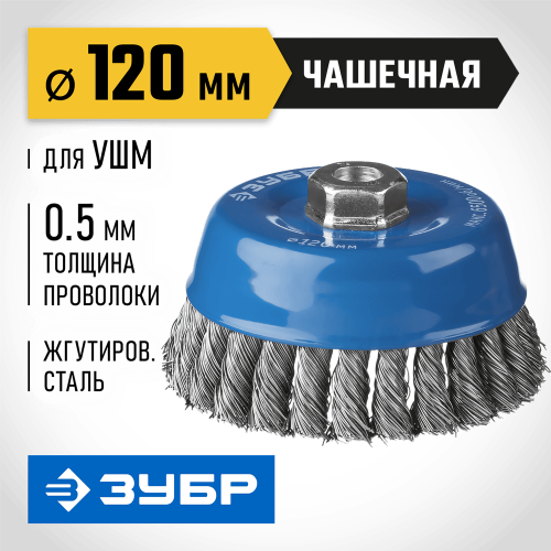 ЗУБР Ø 120 мм, проволока 0.5 мм, щетка чашечная для УШМ 35275-120_z02