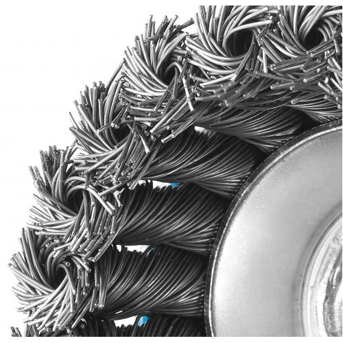 - Повышенный ресурс щетки благодаря еще более высокой жесткости сплетенного пучка и увеличенной толщине проволоки