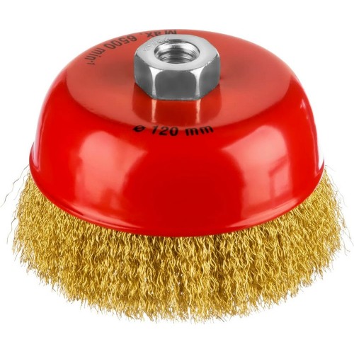 Щетка чашечная для УШМ MIRAX 35142-125, предназначена для зачистки поверхностей от лакокрасочных покрытий, ржавчины, окалины, различных стойких загрязнений, а также для зачистки сварных швов. Каждая щетка-крацовка MIRAX проходит обязательный контроль качества. Все изготавливаемые щетки соответствуют действующим стандартам качества и обеспечивают безопасную работу в четко регламентированном диапазоне оборотов. Применяется для зачистки поверхностей от лакокрасочных покрытий, ржавчины, окалины и различных загрязнений. Витая стальная латунированная проволока. Латунированное покрытие защищает рабочую часть щетки от коррозии.