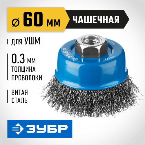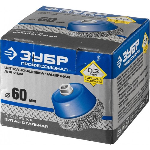Щетка крацовка чашечная для УШМ ЗУБР 35261-060_z02, предназначена для удаления застарелых лакокрасочных покрытий, въевшейся грязи, ржавчины, окалины с поверхностей изделий из стали. Изготовлена из жгутированной стальной проволоки, обеспечивающей максимально-чистую обработку поверхности. Щетка крацовка прошла обязательный контроль качества, соответствует действующим стандартам качества и обеспечивает безопасную работу в четко регламентированном диапазоне оборотов.