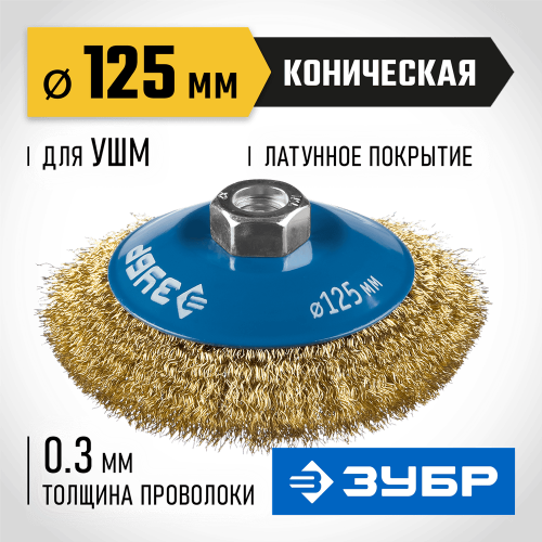 ЗУБР Ø 125 мм, проволока 0.3 мм, щетка коническая для УШМ 35267-125_z02 Профессионал