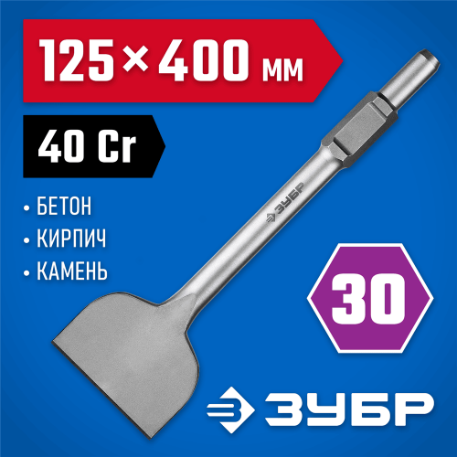ЗУБР 125 х 400 мм, HEX 30 лопаточное зубило 29375-125-400 Профессионал