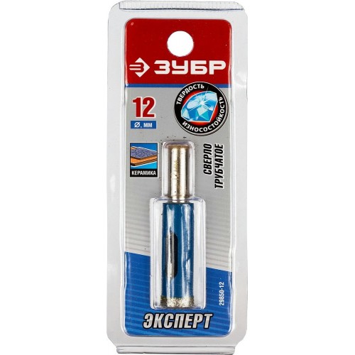 Алмазное трубчатое сверло ЗУБР 29850-12, предназначено для сверления отверстий в керамической и кафельной плитке, стекле, при обязательном водяном охлаждении. Используется с дрелями и шуруповертами в режиме безударного сверления. Рекомендуется работать с помощью направляющего кондуктора. Равномерное распределение алмазного зерна обеспечивает аккуратное сверление материала без трещин и сколов. Цилиндрический хвостовик под любые виды дрелей. Высокая статическая и динамическая прочность алмазов.