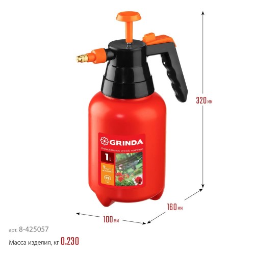 GRINDA PS-1, 1 л, ручной, колба из высокопрочного полиэтилена, помповый опрыскиватель (8-425057_z02)
