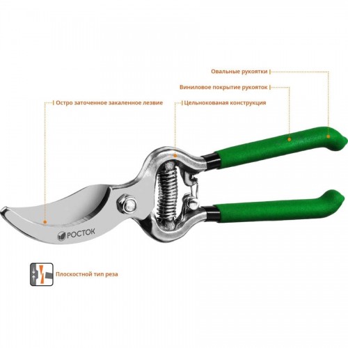 Все секаторы РОСТОК произведены на высокоточном оборудовании из качественных материалов, что гарантирует чистый рез и продолжительный срок службы.0