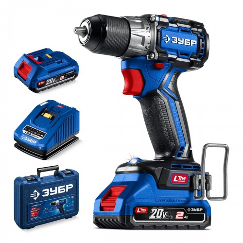 ЗУБР КОМПАКТ, 20 В, 50 Нм, 2 АКБ (2 Ач), кейс, бесщеточная дрель-шуруповерт, Профессионал (DB-50-22)