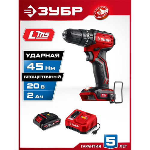 Ударная дрель-шуруповерт ЗУБР ДБУ-45-21, предназначена для сверления отверстий в различных материалах (при установке соответствующих сверл), закручивания/откручивания резьбовых соединений (при установке соответствующих бит), перемешивания ЛКМ (при установке соответствующих насадок).