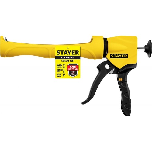 Пистолет для герметика STAYER 06690, предназначен для нанесения герметиков и клеевых составов. Имеет полуоткрытый вращающийся корпус, круглый шток из оцинкованной стали и супер легкий корпус из армированного нейлона. Данная спецификация обеспечивает прочность и надежность конструкции пистолета при использовании.