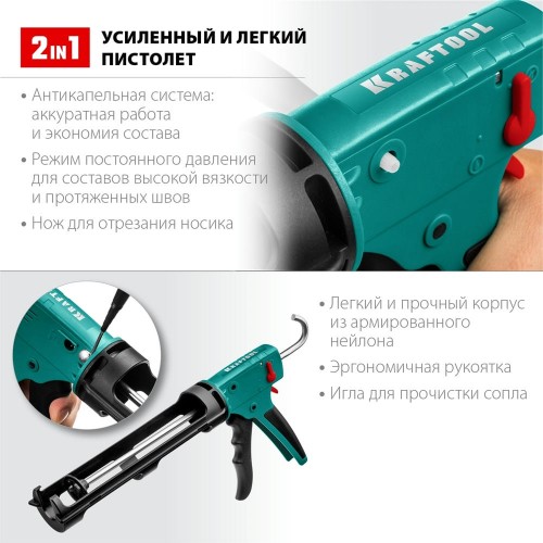KRAFTOOL 310 мл, скелетный пистолет для герметика Grand 2-in-1 06674