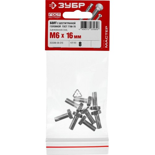 Болты ЗУБР 303086-06-016 изготовлены из высококачественной стали в полном соответствии с действующими стандартами и техническими предписаниями. Находят широкое применение в машиностроении, приборостроении, строительстве, быту и т.д. Шестигранная головка под ключ позволяет создать высокий крутящий момент при затягивании соединения. Класс прочности 5.8 обеспечивает необходимую жесткость конструкции. Цинковое покрытие надежно защищает от коррозии. Для создания разъемного резьбового соединения деталей и конструкций в строительстве и машиностроении. Используются совместно с гайками и шайбами.