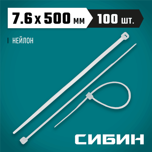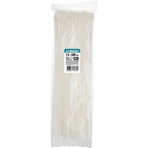 Хомуты нейлоновые белые СИБИН 3786-76-500, предназначены для быстрой стяжки кабелей электропроводки в пучок и их крепления к различным элементам конструкции при проведении электромонтажных работ.