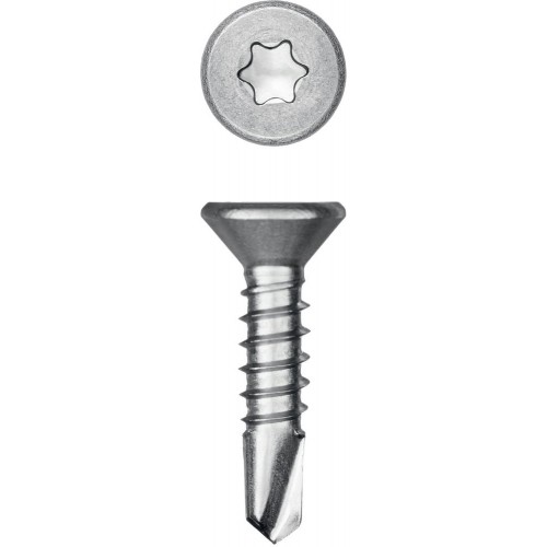 Саморезы с потайной головкой и сверлом изготовлены в соответствии со стандартом DIN7504P из нержавеющего прутка. Легирование никелем, хромом и марганцем полностью сохраняет аустенитную структуру кристаллической решетки, благодаря чему нержавеющие саморезы обладают хорошей прочностью и пластичностью, немагнитными свойствами и невысокой электропроводностью. Саморезы легко вкручиваются обычным шуруповертом или отверткой.