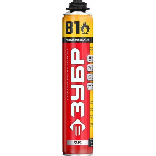 ЗУБР PRO B1 750мл, выход до 45 л, пистолетная, Огнестойкая монтажная пена (41146)