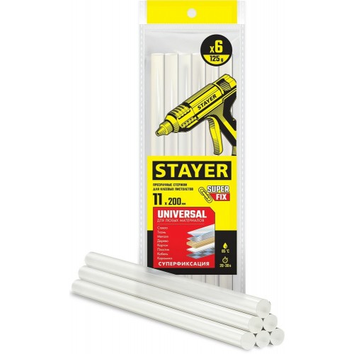 STAYER 6 шт, 11 х 200 мм, стержни клеевые для термоклеевых пистолетов 2-06821-T-S06
