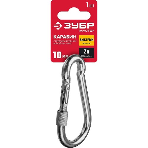 Карабин ЗУБР 304556-10, предназначен для надежного и быстрого соединения цепей и тросов между собой, а также их крепление к различным конструкциям.