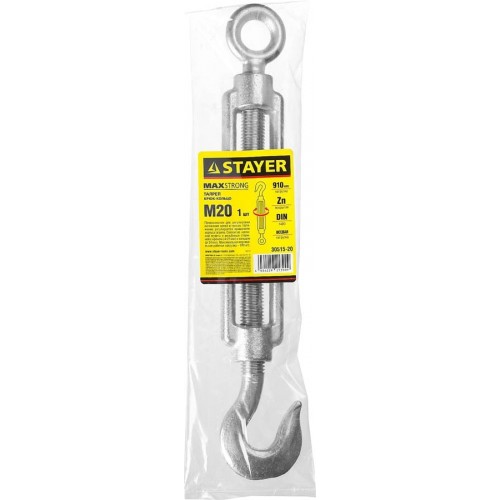 Талреп крюк-кольцо DIN 1480 STAYER 30515-20, применяется для регулировки натяжения цепей и тросов. Изготовлены из оцинкованной стали. Регулировка осуществляется путем вращения натяжной муфты. Кованая конструкция гарантирует продолжительный срок службы изделия.
