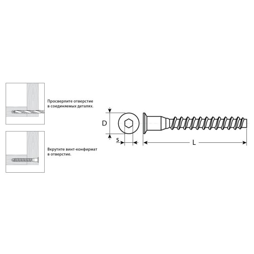 Винт-конфирмат представляет собой особый вид шурупа с потайной головкой и тупым наконечником. Широко применяется в мебельном производстве.