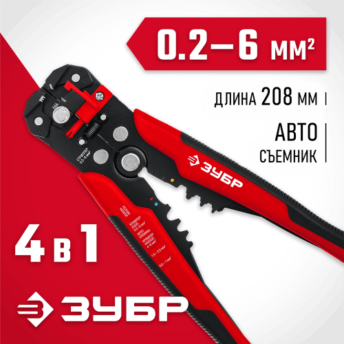 Стриппер автоматический ЗУБР 22645, предназначен для снятия изоляции без повреждения внутренних жил. Изготовлен из высококачественной стали с закалкой рабочих поверхностей, для профессионального применения. Обладают повышенным ресурсом, обеспечивают отличное качество электромонтажных работ. Обжим автомобильных клемм: 3-4 мм. Обжим изолированных наконечников: 0.5-6 мм². Обжим неизолированных наконечников: 0.5- 1; 1-2.5; 4.0-6.0 мм². Одновременная зачистка нескольких проводов. Микрорегулятор.