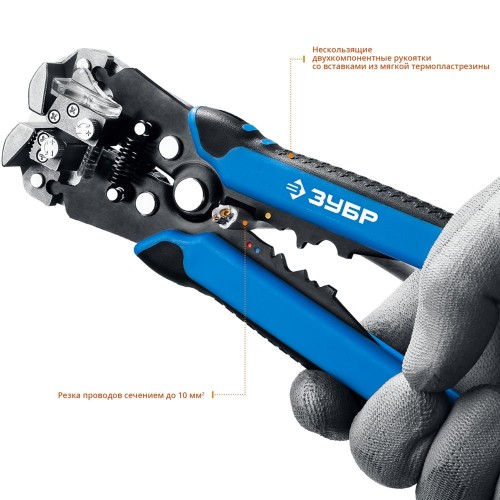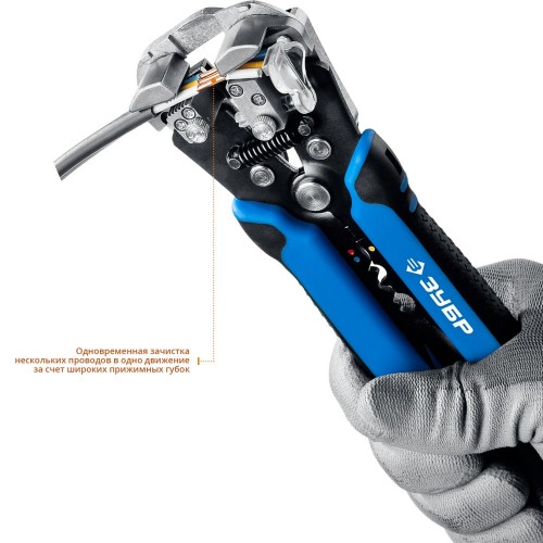 Стриппер автоматический многофункциональный ТТ-7 ЗУБР 22669_z01, предназначен для снятия изоляции без повреждения внутренних жил. Инструменты для снятия изоляции ЗУБР, изготовлены из высококачественной стали с закалкой рабочих поверхностей, предназначены для профессионального применения. Обладают повышенным ресурсом, обеспечивают наивысшее качество электромонтажных работ. Одновременная зачистка нескольких проводов за одно движение, благодаря широким прижимным губкам.