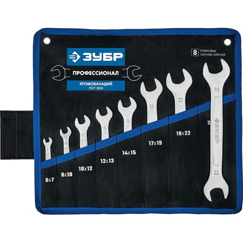 Набор ключей гаечных рожковых ЗУБР 27010-H8_z01, применяется для работ с шестигранным крепежом. Ключи изготовлены из высококачественной хромованадиевой стали с многоступенчатой закалкой для увеличения ресурса ключа, а также обладают надежным хромированным покрытием для защиты от коррозии.