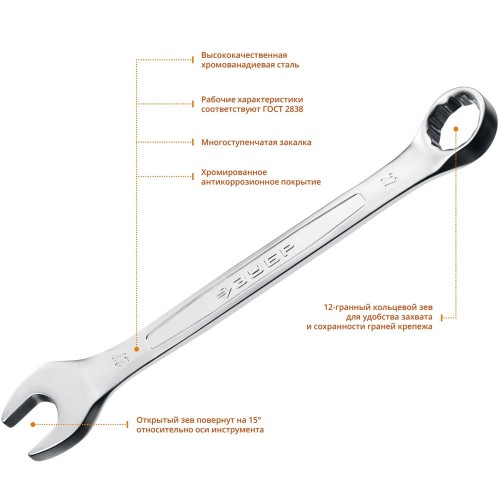 Комбинированный гаечный ключ ЗУБР 27087-27_z01, применяется для работ с шестигранным крепежом. Благодаря правильному подбору материала и параметров технологического процесса выдерживает высокие нагрузки и стоек к истиранию рабочих граней. Трещоточный механизм. Изготовлен из высококачественной хромованадиевой стали с многоступенчатой закалкой для увеличения ресурса ключей, а также обладает надежным хромированным покрытием для защиты от коррозии.