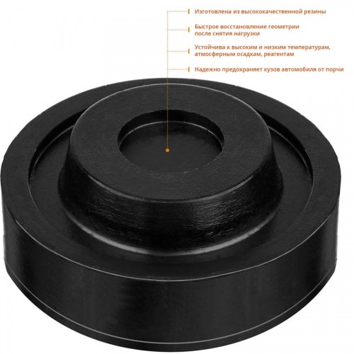 Опора резиновая для домкрата ЗУБР 43007-37, надежно предохраняет возможную порчу ТС при использовании подъемного устройства. Устойчива к высоким и низким температурам, атмосферным осадкам (вода, снег и т.п.). Устойчивое восстановление после снятия нагрузки (минимальное изменение геометрии после длительного сжатия).