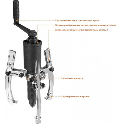 Усиленный съемник применяется для работ с применением повышенных нагрузок. Тяговое усилие до 10 т.