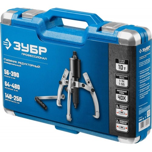 Съемник редукторный универсальный ЗУБР 43301-10, предназначен для Усиленный съемник применяется для работ с применением повышенных нагрузок. Тяговое усилие до 10 т. Возможность сборки как двух- и трехзахватного съемника, в зависимости от необходимости. Ручка для уменьшения прикладываемого усилия. Качественная инструментальная сталь. Хромированное покрытие для защиты от коррозии. Удобный пластиковый кейс для транспортировки и хранения.