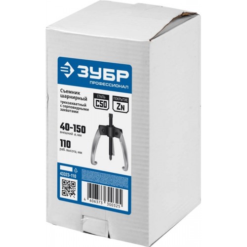 Съемник подшипников ЗУБР 43323-110, предназначен для демонтажа подшипников. Захваты съемника выкованы из качественной инструментальной стали, что обеспечивает долгий срок службы при работе с высокими нагрузками. Позволяет работать с широким рядом узлов. Демонтаж подшипников с внешним захватом. Облегченная установка съемника на подшипник благодаря синхронному смещению захватов. Надежная фиксация снимаемого узла. Стержневой винт с накатанной резьбой и конусной опорой.