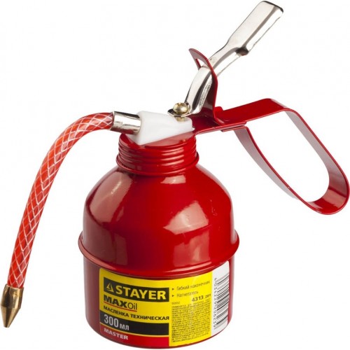 Масленка STAYER 4313_z01, предназначена для проведения смазочных работ. Позволяет смазывать труднодоступные места деталей и механизмов.