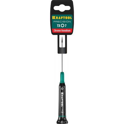 Отвертка для точных работ KRAFTOOL 25684-07, предназначена для выполнения прецизионных работ в электронике и электромеханике. Три зоны вращения: быстрая, точная, силовая. Свободно вращающийся затыльник. Высокоточный наконечник и двухкомпонентная рукоятка.