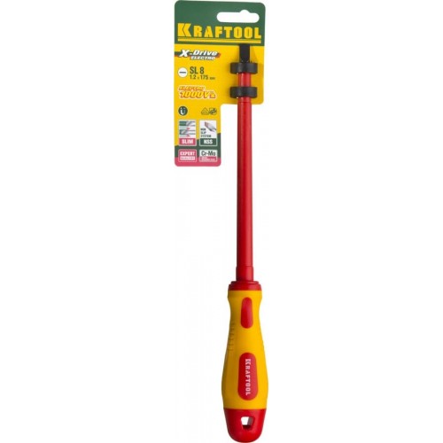 Отвертка KRAFTOOL «X-Drive» 250083-8.0-175, предназначена для выполнения электромонтажных работ под напряжением до 1000 В. Кованый закаленный хромомолибденованадиевый стержень обеспечивает длительный срок службы. Система насечек NSS для предотвращения выскальзывания из крепежа.