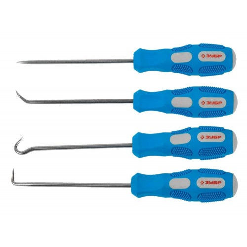 Набор инструментов ЗУБР 21553-H4, предназначен для слесарных работах, ремонте и обслуживании машин и оборудования. Крючки изготовлены из нержавеющей стали и закалены для длительного срока службы. Эргономичные противоскользящие двухкомпонентные рукоятки оптимальной формы обеспечивают надежный и комфортный захват. Двусторонние стержни из хромованадиевой стали. Цанговый держатель обеспечивает быструю и надежную замену стержней, а так же позволяет регулировать их длину. Адаптер для торцовых головок с шариковым держателем. Эргономичная двухкомпонентная рукоятка. Затыльник рукоятки свободно вращается, что обеспечивает легкое и удобное закручивание и повышает точность выполнения работ.