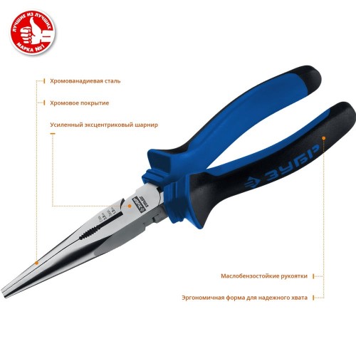 Тонкогубцы ЗУБР 2201-3-20, предназначены для работы в тяжелых индустриальных условиях для захвата и удерживания мелких предметов, перекусывания проволоки.