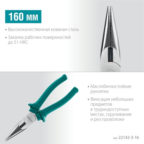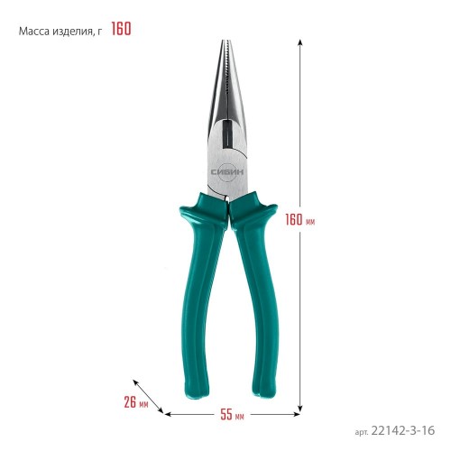 Тонкогубцы СИБИН 22142-3-16, предназначены для выполнения слесарных, монтажных и ремонтных работ. Также данная модель подходит для перекусывания проволоки средней твердости. Изготовлены из высококачественной кованой стали. Имеют маслобензостойкие рукоятки.