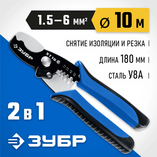Кабельные ножницы ЗУБР ХT-10 22640, предназначены для удаления изоляции и обрезки кабеля. Изготовлены из высококачественной стали, предназначены для профессионального применения. Обладают повышенным ресурсом, обеспечивают высокое качество электромонтажных работ.