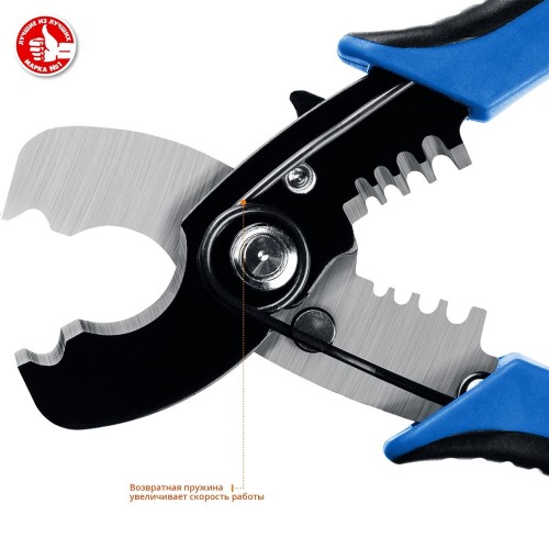 Применяется для удаления изоляции и обрезки кабеля. Не прикладывайте ударных нагрузок. Не использовать для работы под напряжением. Не предназначены для резки стальной проволоки и холоднотянутых медных проводов