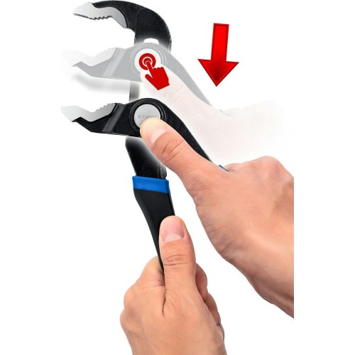 • Уникальная конструкция шарнира с кнопочным фиксатором обеспечивает быстрый подбор ширины зева.
