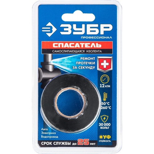 ЗУБР 3м х 25 мм, черная, самослипающаяся аварийно-ремонтная лента Силикон 12381-2 Профессионал
