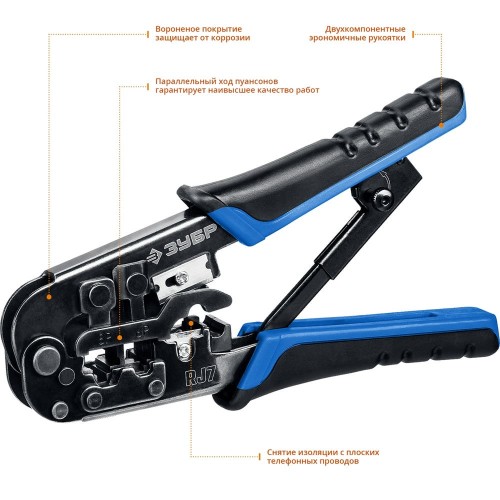для обжима разъемов, снятия изоляции и обрезки кабеля.