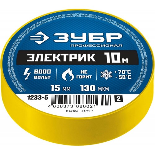 ЗУБР 15 мм х 10 м, изоляционная лента пвх электрик 10 1233-5_z02 Профессионал