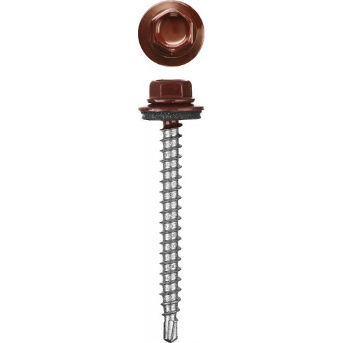 Саморезы кровельные STAYER 30300-48-070-3005, предназначены для крепления различных кровельных материалов к деревянной обрешетке. Кровельные саморезы снабжены шайбой с прокладкой из резины, обеспечивающей герметичность соединения. Высококачественная резина характеризуется устойчивостью к воздействию перепадов температур и ультрафиолетового излучения. Наличие сверла обеспечивает быстроту и легкость крепления кровельных материалов без предварительного сверления. Головка самореза окрашена по стандарту RAL, благодаря чему можно подобрать саморезы под цвет кровли. Шестигранная головка предназначена для создания большого крутящего момента при закручивании самореза. Цинковое покрытие обеспечивает защиту от коррозии.
