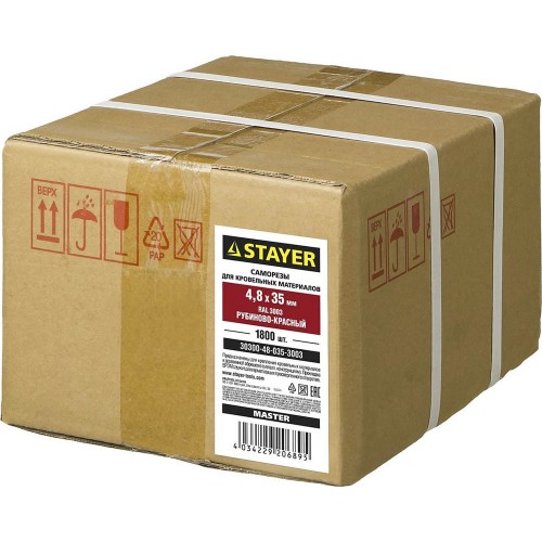 Кровельные саморезы STAYER изготовлены из высокоуглеродистой закаленной стали. Поверхностная твердость мин. 560HV, твердость в сердцевине 240-425HV. Шайба с прокладкой из износостойкой резины EPDM предназначена для герметизации соединения. Шестигранная головка с размером под ключ 8мм позволяет закручивать саморез с большим усилием.