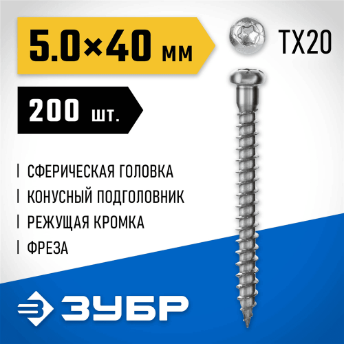 Саморезы ЗУБР 30061-50-40 для перфорированного крепежа, применяются в строительстве для создания надежного и прочного крепления различных конструкций. Обладает высокой прочностью и пластичностью, благодаря чему не разрушаются при деформациях и изгибе. Сферическая головка с конусным подголовником плотно прижимает металл к опорной поверхности. Износостокий шлиц TORX предотвращает срывание биты при закручивании и обеспечивает большой крутящий момент. Цинковое покрытие надежно защищает от коррозии. Режущая кромка на острие рассвеливает древесину, не допуская ее расщепления.