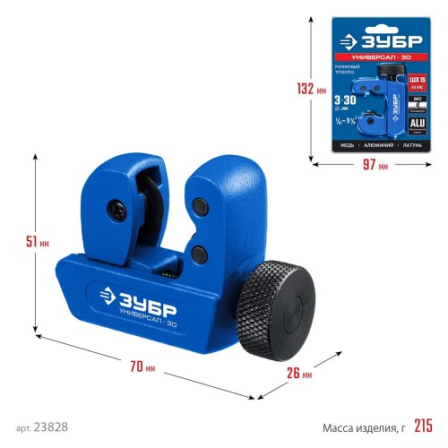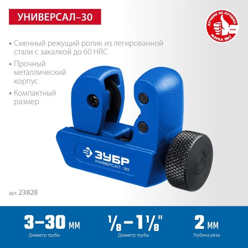 Труборез ЗУБР 23828, предназначен для точного разрезания медных, латунных и алюминиевых труб диаметром 3-30 мм с толщиной стенки до 2 мм. Специально разработанная компактная конструкция облегчает работу в труднодоступных местах и в ограниченном пространстве. Режущий ролик изготовлен из легированой стали, закален до 60 HRC. Точная система подачи ролика для ровного реза. Прочный металлический корпус.