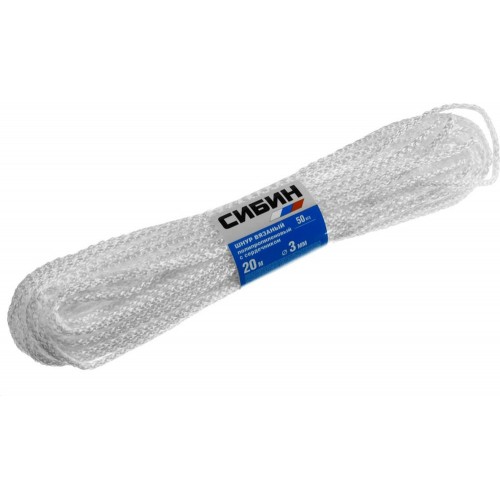 СИБИН 20 м, 3 мм, шнур вязаный полипропиленовый с сердечником 50253