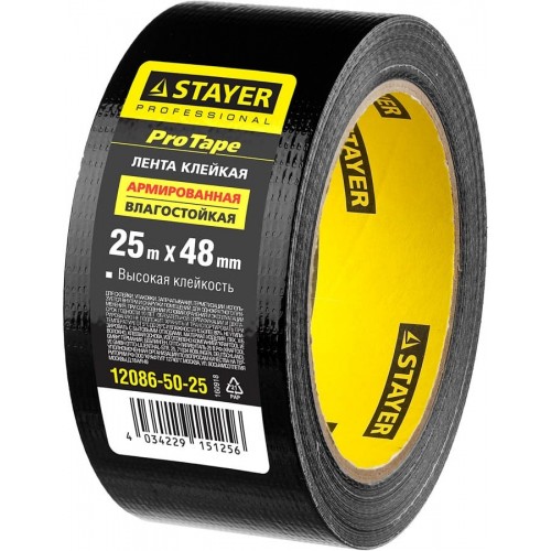 Армированная лента STAYER 12086-50-25, предназначена для склейки, упаковки, запечатывания, герметизации. Для использования внутри и снаружи помещений. Влагостойкая клейкая лента на тканевой основе обеспечит высокую клейкость, удобство применения и хранения.